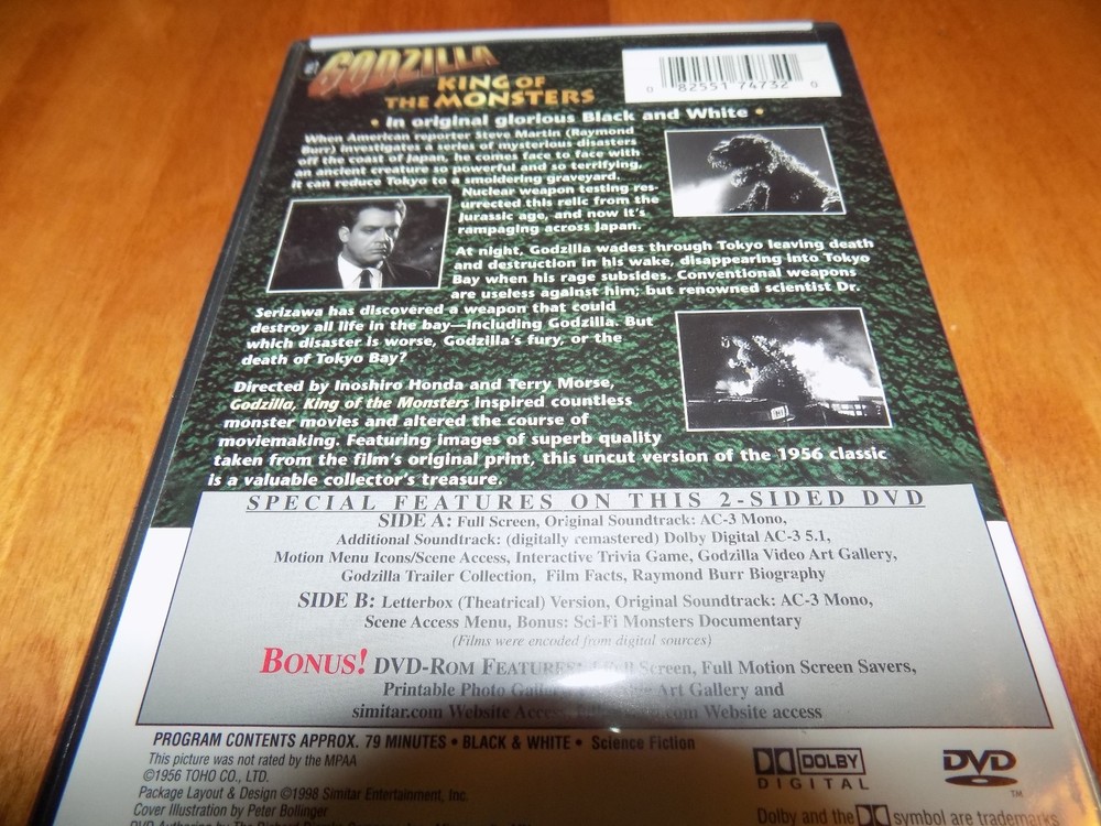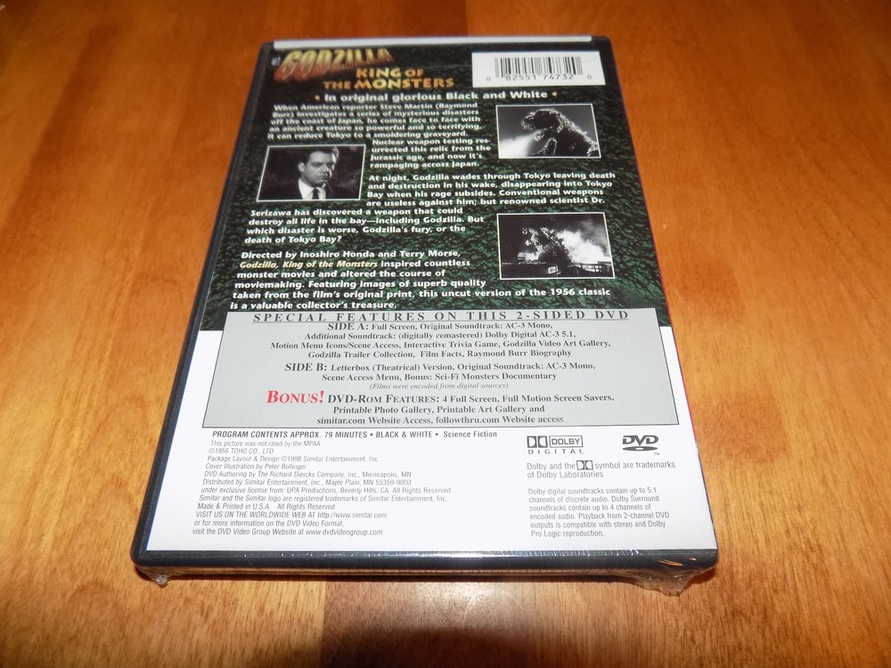 THIS IS AN UPDATE TO ALL MY CURRENT LISTINGS. -UNFORTUNATLEY, I SUFFERED A STROKE AND I AM RELYING ON MY FAMILY TO FIND, PACK AND SHIP THE INVENTORY. I FORMERLY HANDLED THE INVENTORY LOCATION BY MEMORY, AND YET HAVE NOT FOUND A WAY FOR THEM TO READ MY MIND. WE ALL WILL ENDEVOR TO LOCATE AND SHIP OUT AS FAST AS POSSIBLE. PLEASE BE GRACIOUS TO US DURING THIS PERIOD AS THERE IS NO POSITIVE CERTAINTY OF INVENTORY LOCATIONS. IF WE ARE EXPERIENCING DIFFICULTY FINDING YOUR PRODUCT, WE WILL COMMUNICATE VIA EBAY MESSAGES IN A TIMELY MANNER. IF WE CANNOT FIND THE PRODUCT YOU WILL RECEIVE A FULL REFUND. THANK YOU FOR UNDERSTANDING AND PLEASE CONSIDER THIS ISSUE BEFORE MAKING A PURCHASE. THIS IS AN UPDATE TO ALL MY CURRENT LISTINGS. -UNFORTUNATLEY, I SUFFERED A STROKE AND I AM RELYING ON MY FAMILY TO FIND, PACK AND SHIP THE INVENTORY. I FORMERLY HANDLED THE INVENTORY LOCATION BY MEMORY, AND YET HAVE NOT FOUND A WAY FOR THEM TO READ MY MIND. WE ALL WILL ENDEVOR TO LOCATE AND SHIP OUT AS FAST AS POSSIBLE. PLEASE BE GRACIOUS TO US DURING THIS PERIOD AS THERE IS NO POSITIVE CERTAINTY OF INVENTORY LOCATIONS. IF WE ARE EXPERIENCING DIFFICULTY FINDING YOUR PRODUCT, WE WILL COMMUNICATE VIA EBAY MESSAGES IN A TIMELY MANNER. IF WE CANNOT FIND THE PRODUCT YOU WILL RECEIVE A FULL REFUND. THANK YOU FOR UNDERSTANDING AND PLEASE CONSIDER THIS ISSUE BEFORE MAKING A PURCHASE. This is the original classic Godzilla movie that started it all - the black & white version starring Raymond Burr. The DVD is titled "Godzilla - The Original Godzilla Movie - King of the Monsters" - the DVD features the film in both full screen & Letterbox Theatrical Version! The DVD is NEW and still completely factory sealed. The DVD features a host of special features including wide & full screen versions, original soundtrack & a dolby remastered soundtrack, Interactive Trivia Game, Godzilla Trailer Collections, Screen Selections, Godzilla Video Art Gallery, Film Facts - BONUS DVD rom with 4 Full Screen, Full Motion - Screen Savers, Printable Photo Gallery, Printable Art Gallery, and more. The program has an approx. length of 79 minutes. A great Godzilla DVD - Raymond starring in the original black & white Godzilla - the classic movie that began it all. Shipping via U.S. Postal Media Mail is $5.95 and includes US Postal Tracking. Thanks for looking!