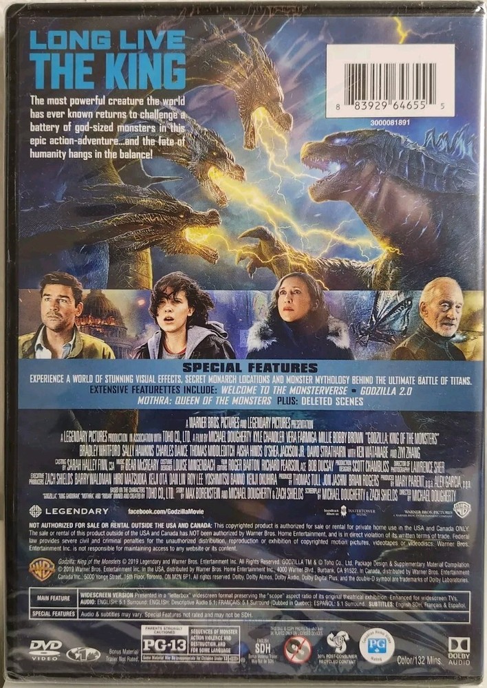 warner bros. pictures & legendary pictures GODZILLA: KING OF THE MONSTERS dvd 2019 new/ unopened/ factory sealed * images shown are of actual item any questions, please ask!