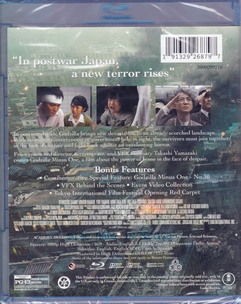 GODZILLA MINUS ONE BLU-RAY SET Japan has barely recovered from the Second World War when a gigantic peril emerges off the coast of Tokyo. Koichi, a deserter traumatised by his first confrontation with Godzilla, sees this as an opportunity to redeem his conduct during the war. Starring Minami Hamabe, Ryunosuke Kamiki, Yuki Yamada, Hidetaka Yoshioka and Michael Arias. Written and directed by Takashi Yamazaki. Theatrical Version: 125 minutes Languages: English, French, Japanese and Spanish Bluray Region: Region Free Slipcover: Not Included We combine shipping for multiple auction winnings won within 7 days. We have set shipping and handling prices. If you do not agree with them, do not bid.