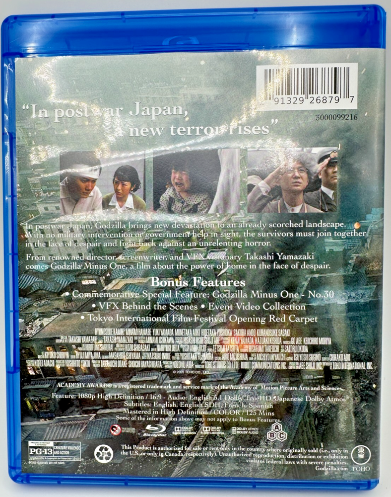 Embark on an exhilarating journey with "GODZILLA MINUS ONE" on Blu-ray, presented by Toho Studios. This gripping adventure, classified as a PG-13, seamlessly blends action, adventure, and drama, promising an immersive viewing experience. The set includes a bonus disc packed with additional content that will delight fans and newcomers alike. Released in 2024, the Blu-ray edition ensures you enjoy the cinematic spectacle in the best possible quality, compatible with region_a players. Dive into the enthralling world of Godzilla, enhanced by the bonus disc's exclusive material, and indulge in a movie night that's both informative and thrilling. You can choose to play audio in English. Ships USPS Ground Advantage Ships same or next business day.