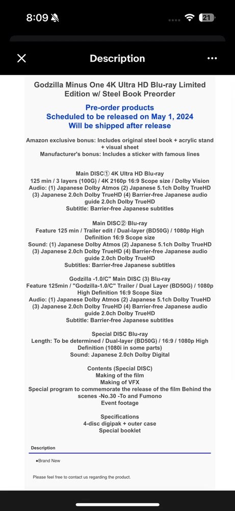 Experience the action-packed adventure of Godzilla Minus One in stunning 4K UHD Blu-ray quality. This limited edition release features a steel book and a 4-disc digipak, along with an outer case, making it a must-have for any Godzilla fan. The movie, produced by Toho in Japan, is set to be released in 2024 and is sure to be a thrilling addition to your movie collection. The cardboard sleeve case type and Japanese language make this release even more unique. Don't miss out on this opportunity to own a piece of Godzilla history.
