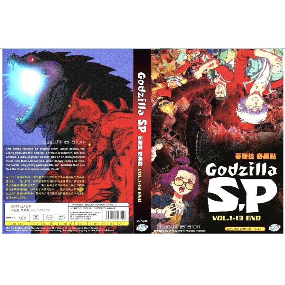 Godzilla S.P Vol. 1-13 End (English Dubbed) Synopsis; This series features an original story, which depicts the young geniuses Mei Kamino, a female researcher, and Yun Arikawa, a male engineer, as they take on an unprecedented threat with their companions. When danger comes up from the depths, only young geniuses Mei, Yun, and their team can face the threat in Godzilla Singular Point! DESCRIPTION Godzilla S.P (Singular Point) ゴジラ S.P <シンギュラポイント> Complete TV Series Volume 1-13 End *NEW! English Audio Dubbed Version Free International Shipping Optional: English Subtitle Condition: Authentic Brand NEW, Original Factory Sealed. Episode: Vol. 1-13 End No. of Discs: DVD x 2pcs Region Code: ALL Region, Region FREE "0" (Able to play on DVD Players throughout the World) Audio Language: English / Japanese Subtitles: English / Chinese Format : DVD / NTSC & All Region Code (16:9) Publisher : Malaysia Original Hologram Sticker +=+=+=+=+=+ PAYMENT POLICY: Currently, we accept payment through eBay-managed payment. SHIPPING POLICY: We ship using Standard Shipping from USA. Handling time is 3 days. Estimated Delivery time within 5 days. Item location is at Walnut, California. Your goods will be shipped with a valid tracking number. All products are packed, and layered with bubble wrap to reduce damages during shipment delivery. RETURN POLICY: Our policy allign with ebays professional law standards. Buyers covered by the ebay Money Back Guarantee are eligible for refunds in this situations: damaged item, item not matching the description or wrongitem. To initiate a refund, provide evidence of shipping damage and save the packaging. If you no longer want the item, we accept returns as long as it's in the same condition as when shipped. Refunds will be issued minus the original shipping cost. Return the item within the specified period, umopened with no missing parts or damage to the packaging. Once the item is delivered and in satisfactory condition, a refund will be issued within 2 days. Unreasonable circumstance or failure to meet conditions may result in a non-accepted return. FEEDBACK: We highly value and appreciate your feedback. Your experience is important to us, and if there are any areas where we can improve, please let us know before leaving any feedback. Our customer are our top priority, and we take your feedback seriously. We are committed to working together to find resolution that satisfy you. Please contact us through ebay messaging, including your contact information and order number. Thank you for shopping with us. APPRECIATION: Thank you for visiting our store, and appreciate you buying. Please do visit us again for other products!