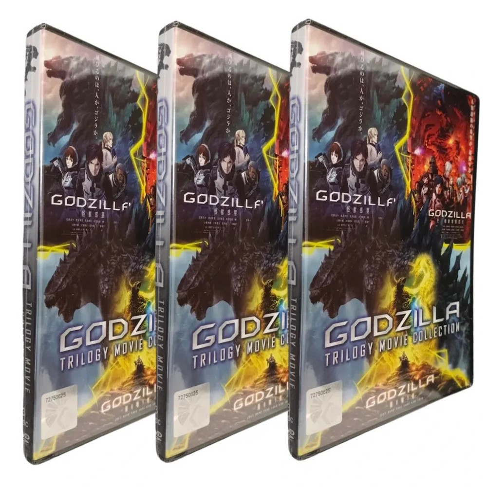 The product is a DVD box set collection of the GODZILLA trilogy with English dubbing. It is formatted for all regions (Region Free/Worldwide) and includes English and Japanese language options, with subtitles in English and Chinese. The release year is 2020, and the video format is NTSC. This box set is manufactured in Malaysia and is not a former rental. Fans of animation and anime will enjoy this collection.