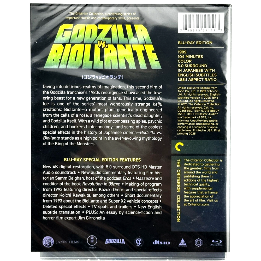 <![CDATA[<div>GODZILLA VS BIOLLANTE (1989) BLU-RAY Special Edition - Criterion Collection NIW Due to the high cost of shipping we are unable to accept offers on individual DVDs or Blu-Rays....