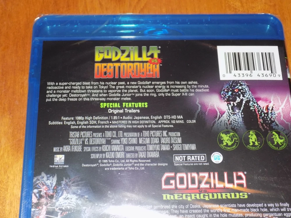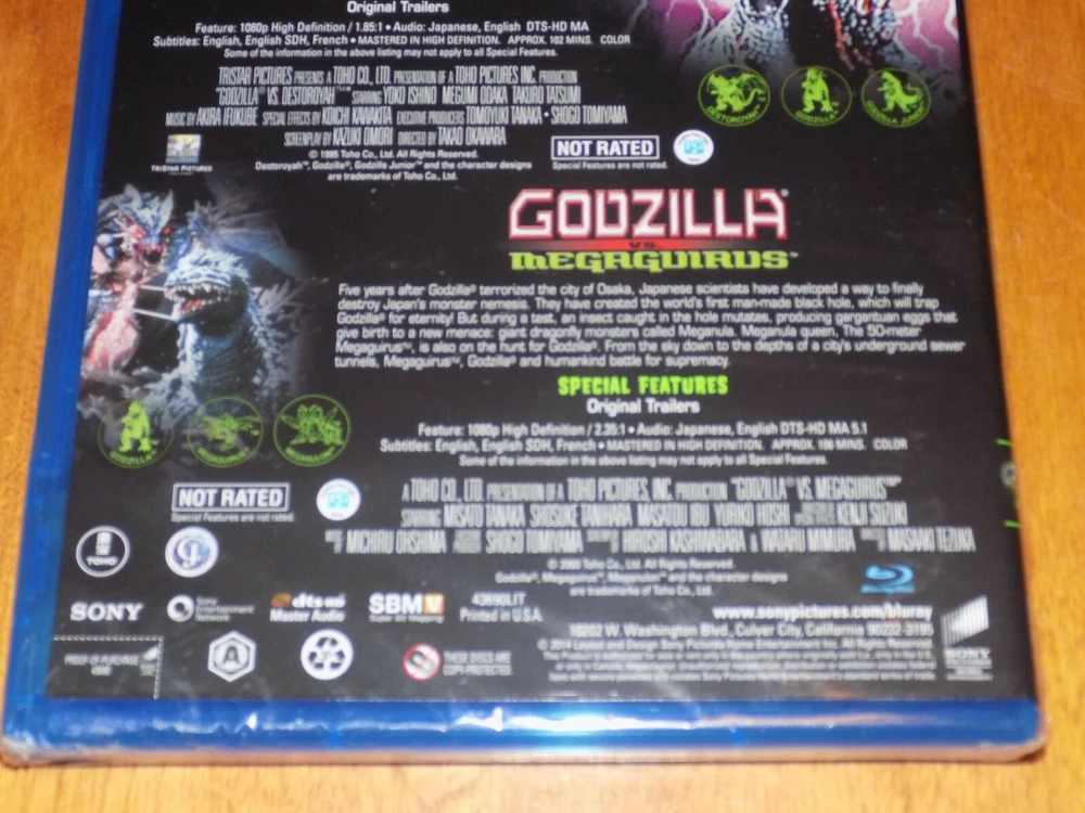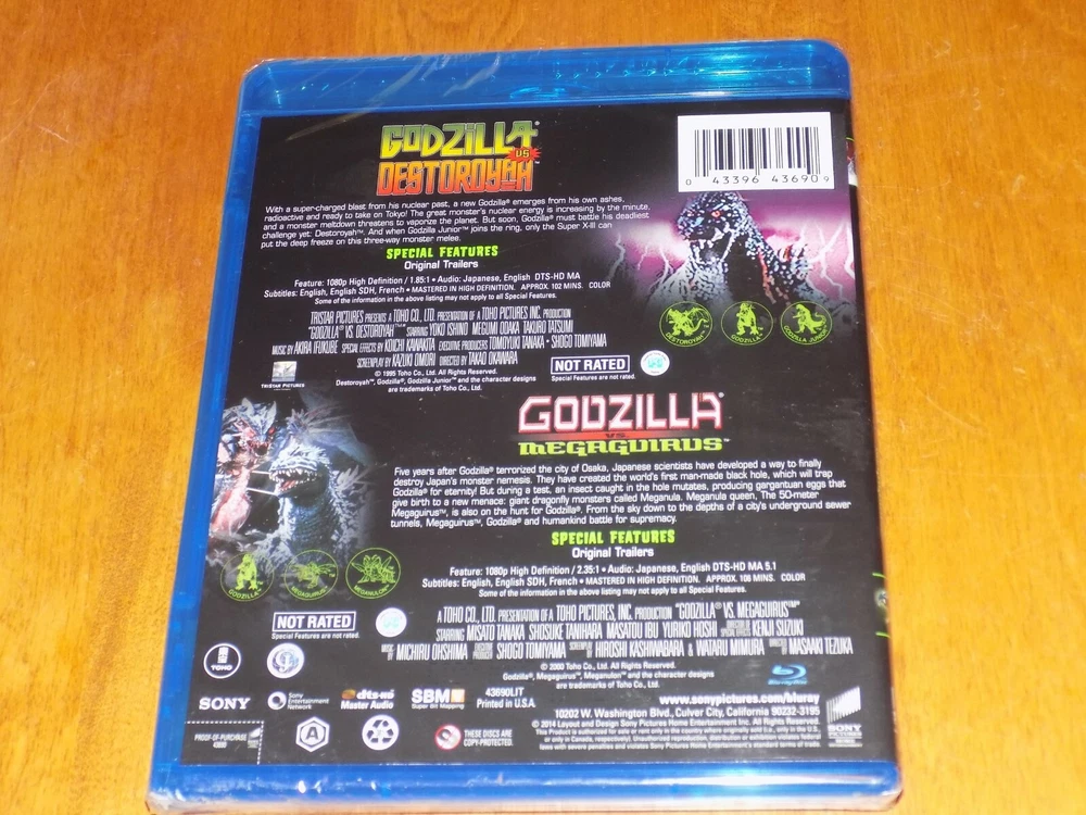 This is a great Blu-Ray Disc featuring 2 classic movies from the Godzilla Series. The BLU-RAY DISC is titled "THE TOHO GODZILLA COLLECTION - GODZILLA VS. DESTOROYAH / GODZILLA VS. MEGAGUIRUS". The item is NEW & SEALED. Shipping and handling via U.S. Postal Mail is $4.95 and includes U.S. Postal Tracking. Thanks for looking!