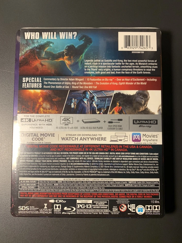 Godzilla vs Kong Best Buy steelbook. 4K UHD+Blu-Ray+Digital Code. Brand new & sealed. There are 2 tiny dings on the right edge, see pics #11 & 12. Examine photos carefully. What you see is what you get. Disclaimer: Please note I’m not responsible for any defect/damage that is not visible or obvious, that might be underneath the J-card/packaging. Also not responsible for disc coming loose during shipping. If you bid/purchase, you agree to these conditions. Item will be securely packaged in cardboard box for safe delivery. Shipping via Media Mail. I welcome any questions. Please check out my other items. Thanks for looking.
