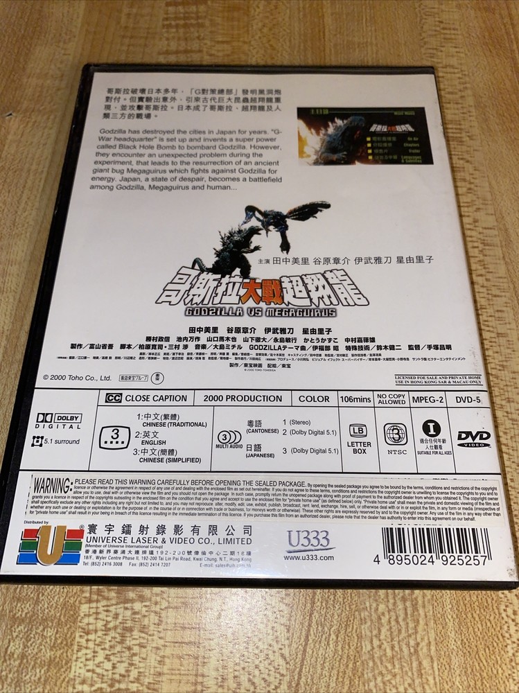 GODZILLA Vs MEGAGUIRUS: DVD JAPANESE DUB, ENGLISH SUBTITLES, RARE OOP-ORIGINAL.