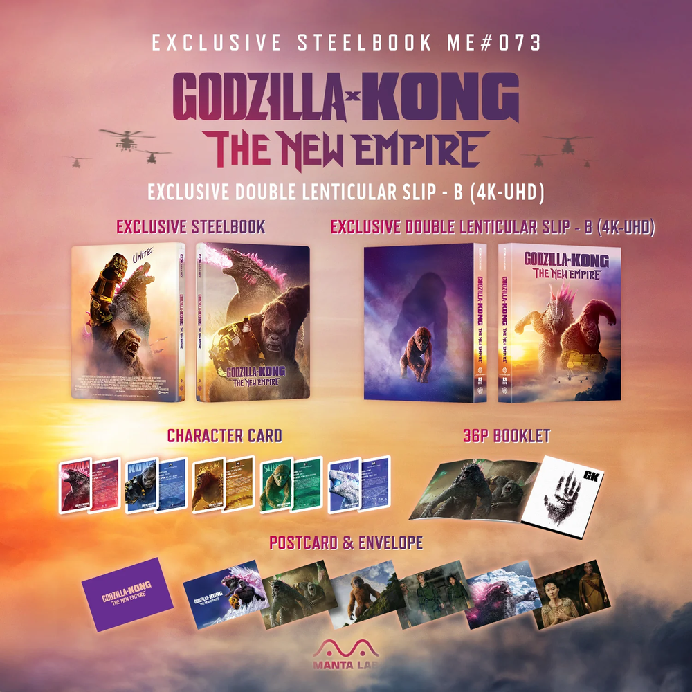 GODZILLA X KONG: THE NEW EMPIRE [4K UHD + 2D] Blu-ray STEELBOOK Manta Lab Exclusive #073 [Double Lenticular B Edition] Brand New - Factory Sealed - Region FREE ML #073 Godzilla x Kong: The New Empire Double Lenticular B Edition Includes: - WEA, Exclusive Steelcase design by Manta Lab features: Full Glossy Finish and Debossed Title - Double Lenticular B: 3D Lenticular x 2 Spot Glossy + Spot Matte + Spot Embossing - Exclusive Pocket Holder - Postcards, Character Cards - Exclusive Numbering Sticker - Exclusive Release Front Sticker - Exclusive Release Lenticular Sticker 4K UHD AUDIO: English Dolby Atmos TrueHD English Dolby Digital 5.1 German Dolby Atmos TrueHD Italian Dolby Atmos TrueHD Czech Dolby Digital 5.1 German Dolby Digital 5.1 German Descriptive Audio 2.0 Italian Dolby Digital 5.1 Polish Dolby Digital 5.1 Slovakian Dolby Digital 5.1 Subtitles: English SDH, Cantonese, Complex Chinese, Czech, German SDH, Korean, Italian SDH, Polish, Slovakian 2D Audio: English Dolby Atmos TrueHD English Dolby Digital 5.1 French Dolby Atmos TrueHD Czech Dolby Digital 5.1 French Dolby Digital 5.1 Polish Dolby Digital 5.1 Slovakian Dolby Digital 5.1 Subtitles: English SDH, Cantonese, Complex Chinese, Czech, Dutch, Korean, French, Polish, Slovakian Steelbook is Brand New, in Mint Condition No scratches or dents visible through the Plastic Wrap. The pictures are from the actual steelbook you are purchasing. All steelbooks ship in a box with plenty of packing materials for protection. Domestic Combined Shipping is Available. Please Contact Me For A Shipping Quote. We Offer International Shipping Through eBay's Global Shipping Program. Click here for eBay's Global Shipping Program Overview . Please click here to check out my other listings for other rare Steelbooks. Feel free to contact me with any questions or concerns you may have. Steelbook Disclaimer. Steelbooks are very fragile and may have flaws underneath the wrapping that can only be seen once the wrapping is taken off. I will not be held responsible if a disc gets loose during transit or for any defects that cant be noticed when the wrapping is still intact. Make sure the item is to your satisfaction before you open it. For this reason, if you have opened the steelbook or 30 days have passed. NO returns or refunds will be accepted.