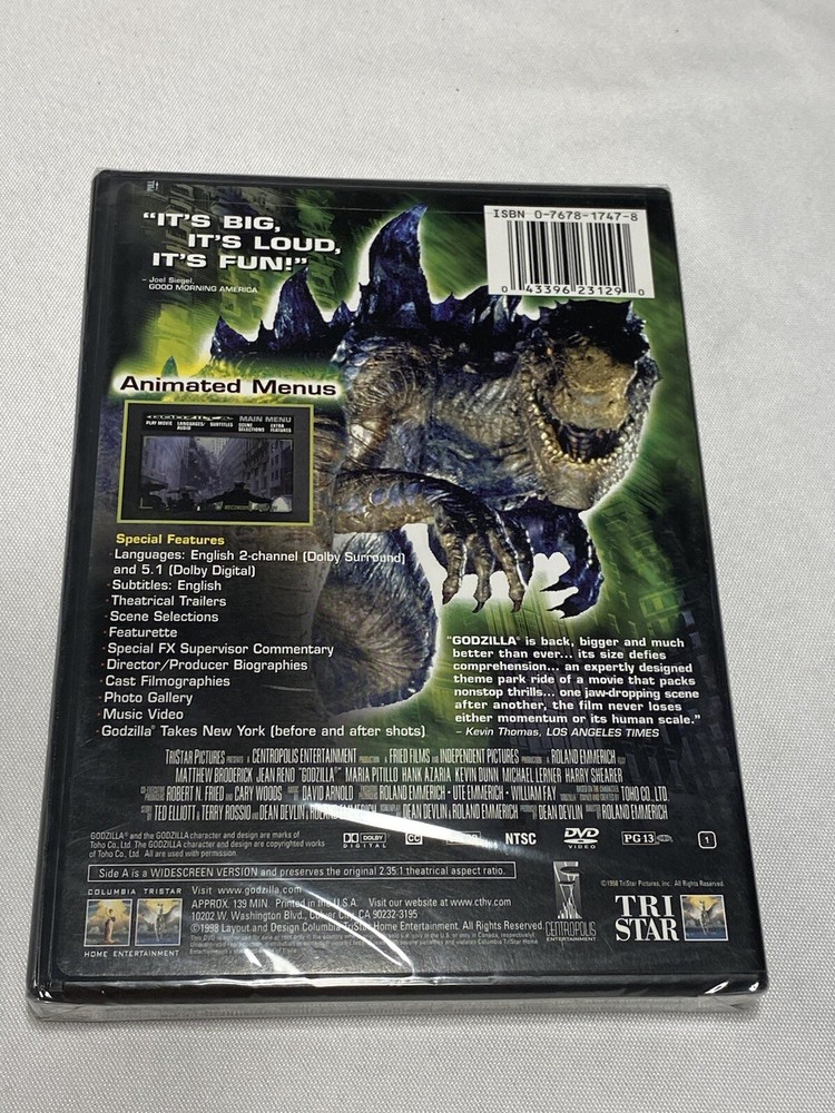 Get ready for an epic adventure with this brand new, sealed DVD of the classic movie "Godzilla". This film is perfect for fans of action-packed, thrilling movies and has a PG-13 rating suitable for all audiences. It features a gripping storyline centered around gambling and is part of the TV shows genre, making it a must-watch for any movie lover. This DVD comes in the standard format and is ideal for collectors or anyone looking to add a new movie to their collection. Don't miss out on this exciting opportunity to own a piece of movie history. Order now and experience the excitement of "Godzilla" for yourself!
