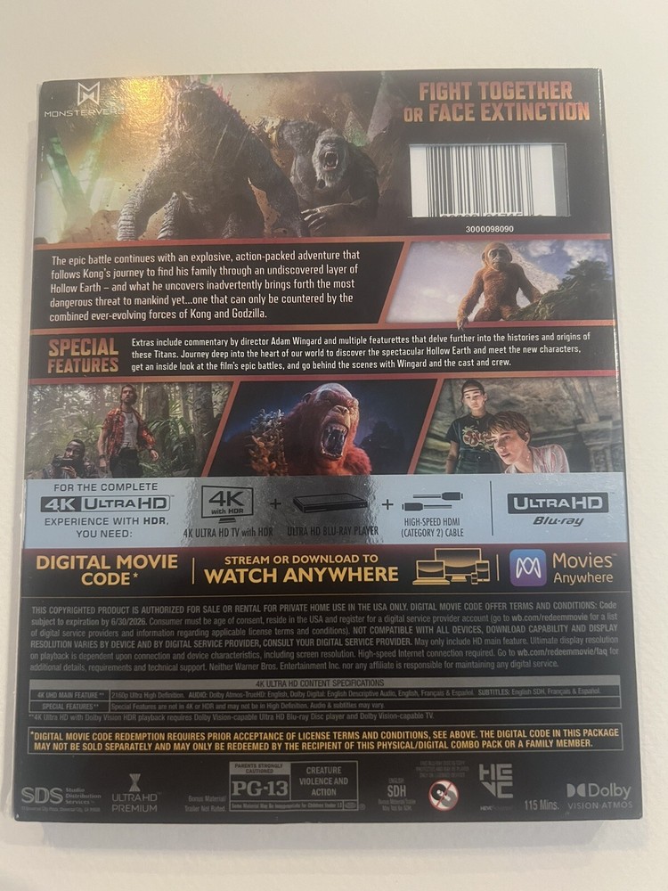 Experience the epic battle of the century with the new release of GODZILLA x KONG THE NEW EMPIRE. This movie showcases action-packed scenes of two iconic monsters battling it out for dominance. With a runtime of 115 minutes, this DVD format movie comes in a new, sealed package, and includes a digital code for a 4K Ultra HD experience. The movie is rated PG-13 and features English subtitles, making it accessible to a wide range of audiences. Directed by Adam Wingard, this movie is part of the Godzilla franchise and is produced by Warner Bros. The Blu-ray case type and widescreen edition make this edition a must-have for collectors. Whether you are a fan of action and adventure or creatures and monsters, this movie will keep you on the edge of your seat. Get your copy now and join the battle for the new empire!