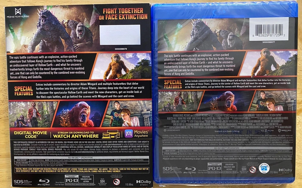 GODZILLA X KONG THE NEW EMPIRE BLU RAY ALSO INCLUDES SLIPCOVER SLEEVE FROM WARNER BROS. DISC IS MINT, SLIPCOVER DOES HAVE A FEW DINGS, DIGITAL HD CODE NOT INCLUDED OPENED CAREFULLY ON THE SIDE AND REMOVED. 100% AUTHENTIC AND ORIGINAL GUARANTEED. FAST SHIPPING WILL SHIP NEXT DAY AFTER PAYMENT CLEARS. ON HAND READY TO SHIP! THIS ITEM WILL SHIP IN A BOX!