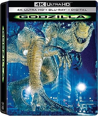 Leaving a trail of captsized ships and demolished cities, a monstrous reptile known as Godzilla makes his way towards New York City. Seemingly imprevious to traditional weaponry, Godzilla will destroy Manhattan unless scientist Dr. Nick Tatopolous and mysterious French insurance investigator Philippe Roache discover how to stop the monster's rampage. GODZILLA is directed by Roland Emerich and written by Dean Devlin, the team behind INDEPENDENCE DAY. FEATURES: Media Format ? : ? 4K, Subtitled, Digital_copy, Blu-ray Run time ? : ? 2 hours and 19 minutes MPAA rating ? : ? PG-13 (Parents Strongly Cautioned) Actors ? : ? Matthew Broderick, Jean Reno, Maria Pitillo Godzilla (1998) 25th Anniversary 4K Ultra HD SteelBook