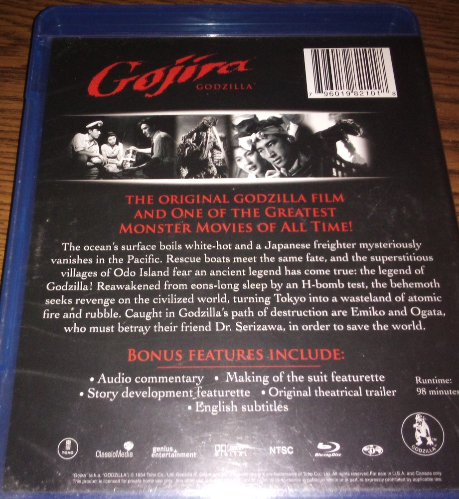 GOJIRA Blu-ray DVD / USA premiere run ticket stub lot. Here's a nice two-item lot featuring the original Japanese version of what appeared on US screens in 1954 as GODZILLA (with Raymond Burr). Includes both the Toho initial release on Blu-ray disc, with special features, and a ticket stub from the US premiere run of GOJIRA, Nu Art Theater in Santa Monica CA, dated 5/19/2004. Toho liner and Blu-ray are unblemished, as new. Case has slight wear from storage, like New Ticket stub has light age, ANM. For your GODZILLA collection. BONUS item just adding here, within the GODZILLA universe maybe: CLOVERFIELD original film ticket stub. AEX condition. Shipping within continental USA is FREE. INTL shipping including Canada is $20.
