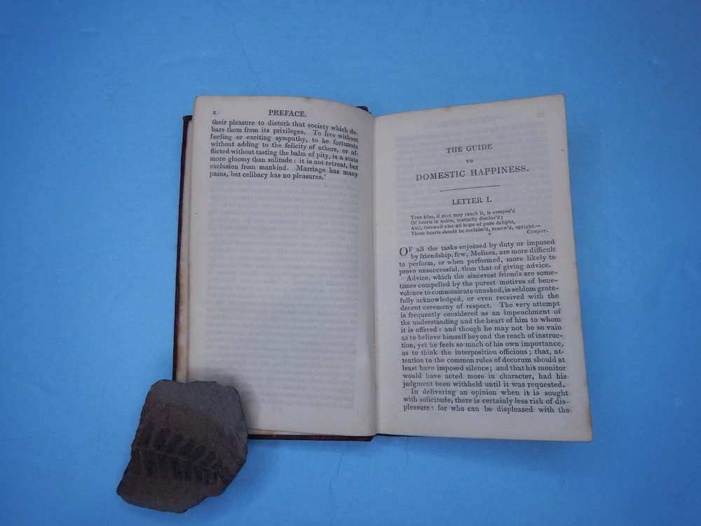 A splendid book of advice to prospective husbands and wives in pre-Victorian England. Size is approximately 5 x 3 inches; 141 pages plus three pages of ads. Covers are fully embossed morocco ( with embossed name of binders Remnant & Evans on lower rear cover). Blind tooled. All edges gilt. Gilt titles to spine. Internally clean and unmarked. Light foxing to title page and end papers. Binding tight, corners lightly bumped, slight wear to corners and edges. A small gem in a great style of binding.