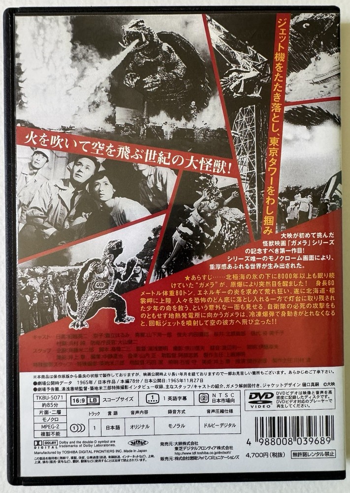 Gamera, The Invincible (DVD) - Toshiba Original Japanese with English Subtitles MINT CONDITION