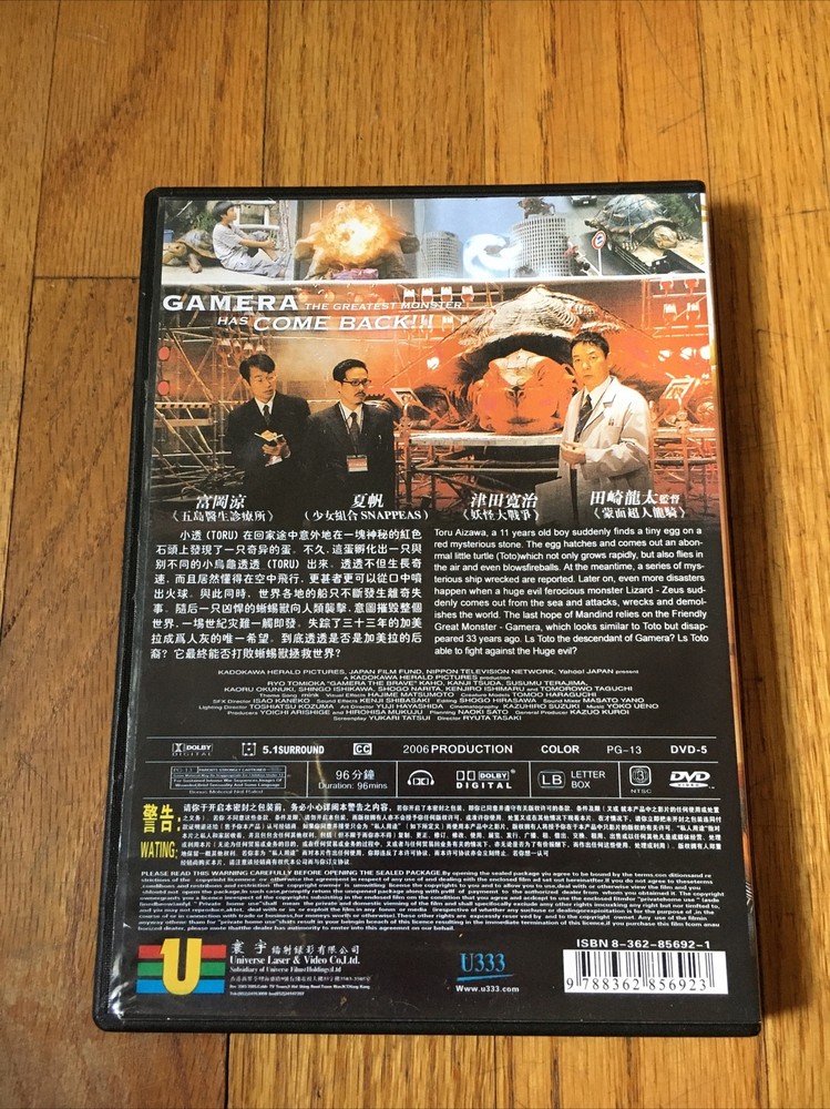 Gamera the Brave (DVD, 2008) Disc and sleeve/ jacket “Like New” from a private collection. No scratches guaranteed! Ships FREE USPS Media Mail, tracking included. Check back for more daily movie listings!
