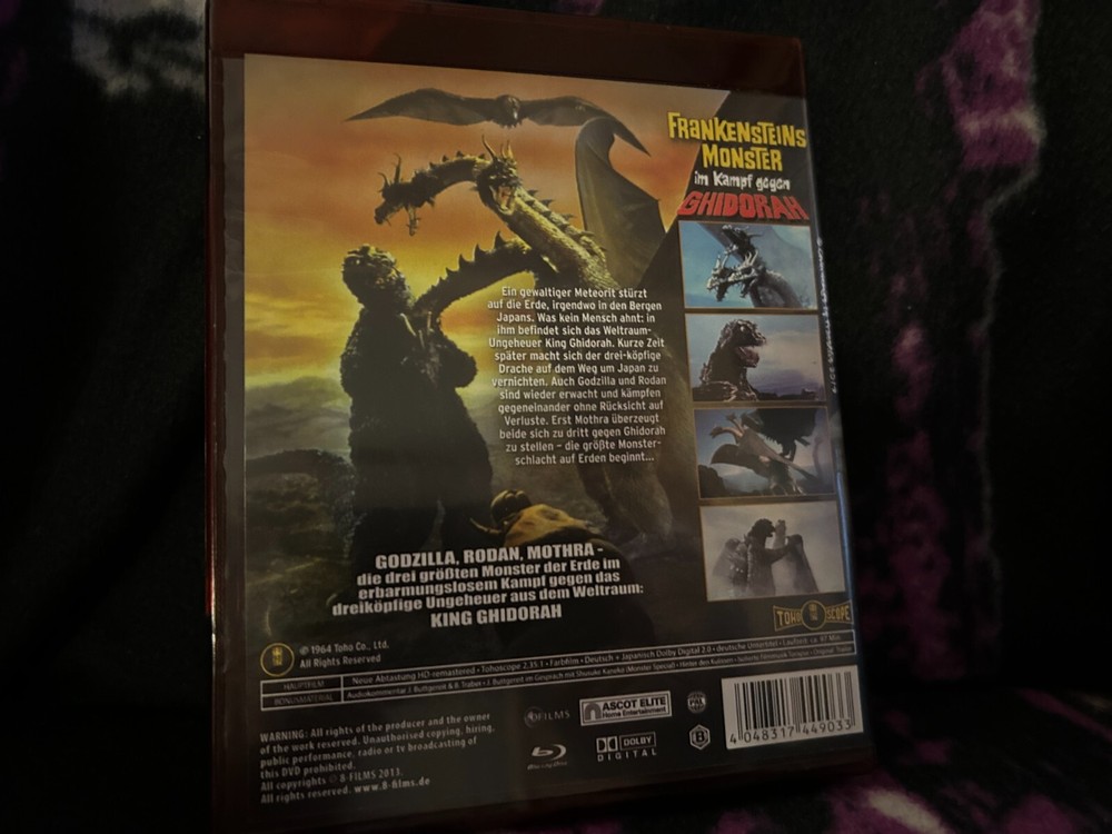 Hello, eBay sellers. For sale today is the 1964 kaiju film, "Ghidorah, the Three-Headed Monster". This is the fifth entry in the Godzilla film series. This Blu-ray is from Germany and was released in 2013. I must advise that there is NO ENGLISH audio or subtitles on this release. This Blu-ray is rare and out of print. Film has a run time of 93 minutes and is presented in Japanese and German DTS-HD MA 5.1 with optional German subtitles. This disc is also region free. Please make sure that your Blu-ray player can handle PAL playback which might cause incompatibility on some players. Shipping and handling will be $10. It will be shipped and packaged carefully in a box and bubble wrapped to ensure it's safe arrival to the buyer. I take pride in making sure the rarities in my collection make it safe to their next destination. Thank you and have a good day.