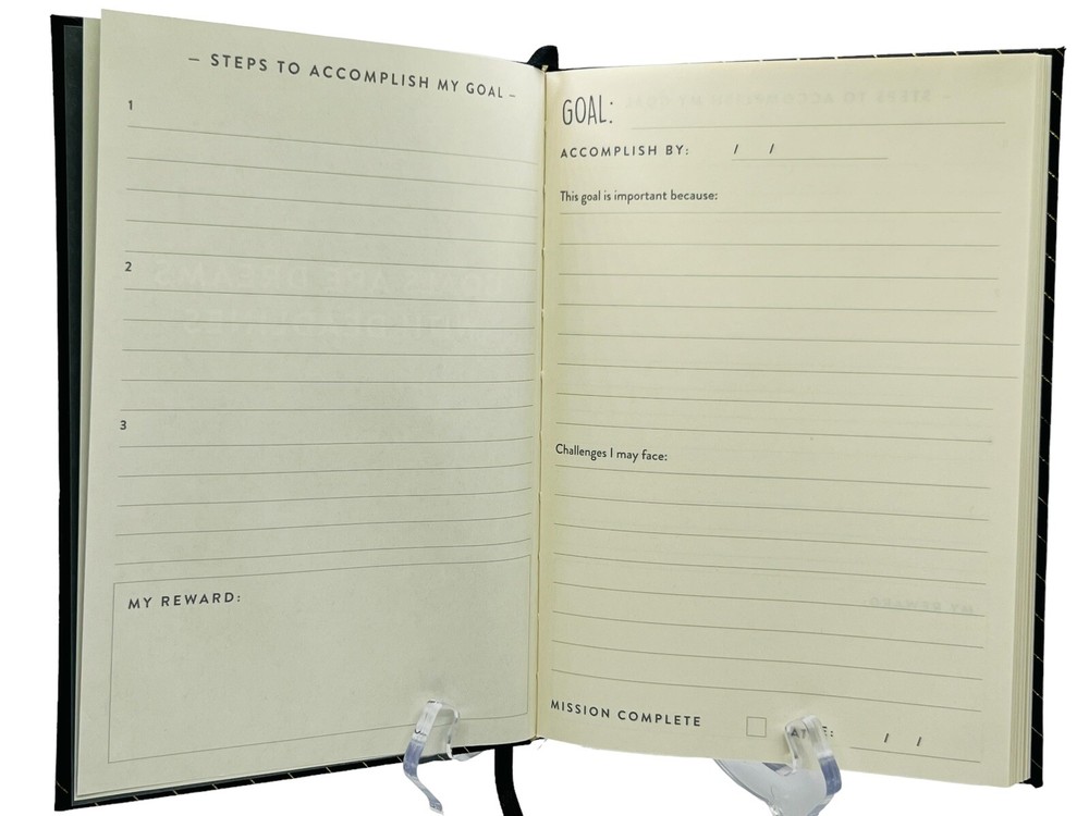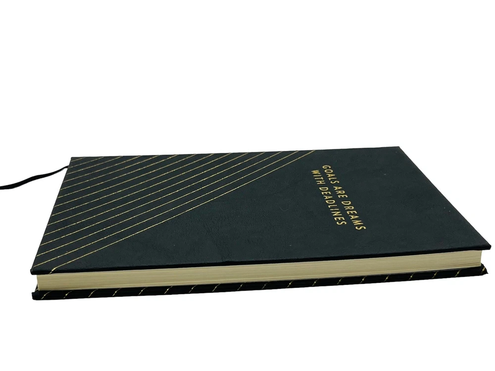 Goals Are Dreams with Deadlines Guided Daily Journal 200 Pages 8x6 in Hardcover Daily Practice to Help you Reach Your Goals Made in Turkey, Ships from US Set and achieve your goals with more ease and shift your mind to a state of optimism. The Goals Are Dreams with Deadlines Journal is your secret weapon to reach your goals and focus on the good in your life. With a simple structured format based on positive psychology research, you will be able to set and reach your goals with more ease and structure. Why you will love this journal: Includes Goal, date, Goal’s importance, Challenges, Steps to Reach the Goal and Rewards sections for each goal Includes daily inspirational quotes Bookmark included Undated, 100 pages Perfect for all busy people who are looking for a way to create and track their goals with more efficiency and structure. Simple format and guided prompts eliminate the excuses for not writing down or accomplishing your goals. Journal’s guided and structured exercises will lead you down a path toward an enhanced version of the person you already are. Elegant Black and Gold Cover and Compact Size (8x6 in) is perfect for home, office or on the go, and is a great gift for both men and women 100% Biodegradable, recyclable, FSC certified paper This elegant and portable journal makes a great gift for all occasions for friends and family as well as business colleagues at any office gift exchange (Secret Santa or White Elephant gift). Holiday (Christmas) gift wrapping is available - please let us know if you’d like us to wrap the package for you, so all you have to do is to put a bow on it and present it. Terms of sale/Returns: PLEASE READ CAREFULLY! We guarantee 100% satisfaction with our products. If you are not satisfied with your purchase, you can return it in its original (UNUSED/UNOPENED) condition within 30 days of delivery. We only ship to the confirmed eBay address. We are not responsible for undeliverable addresses. Once delivery confirmation is posted, we are not responsible for stolen items. Original S&H cost is not refunded-we only refund the cost of the product. If you have any issues or concerns about your order, please contact us first so we can address it. Ships from US* within 1 day of receiving payment (We offer combined shipping on multiple items-please contact us for details). Thank you for your business and have a phenomenal day!
