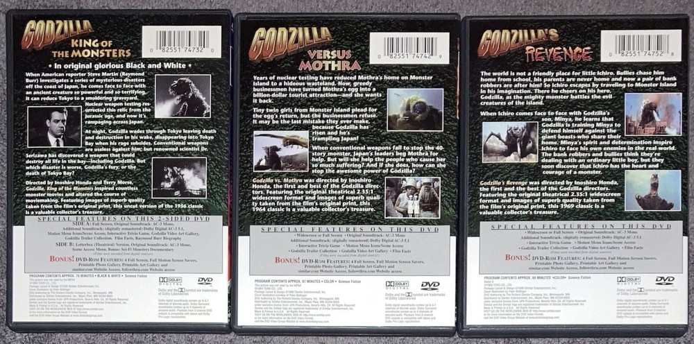 Godzilla 1954 Godzilla Versus Mothra 1964 Godzilla’s Revenge (All Monsters Attack) 1969...