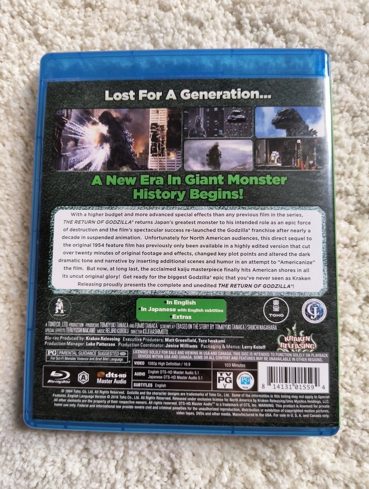 Godzilla 1984 The Return of Godzilla (Blu-ray,2016) Kraken Releasing English Sub. Condition is Like New. Shipped with USPS Media Mail.