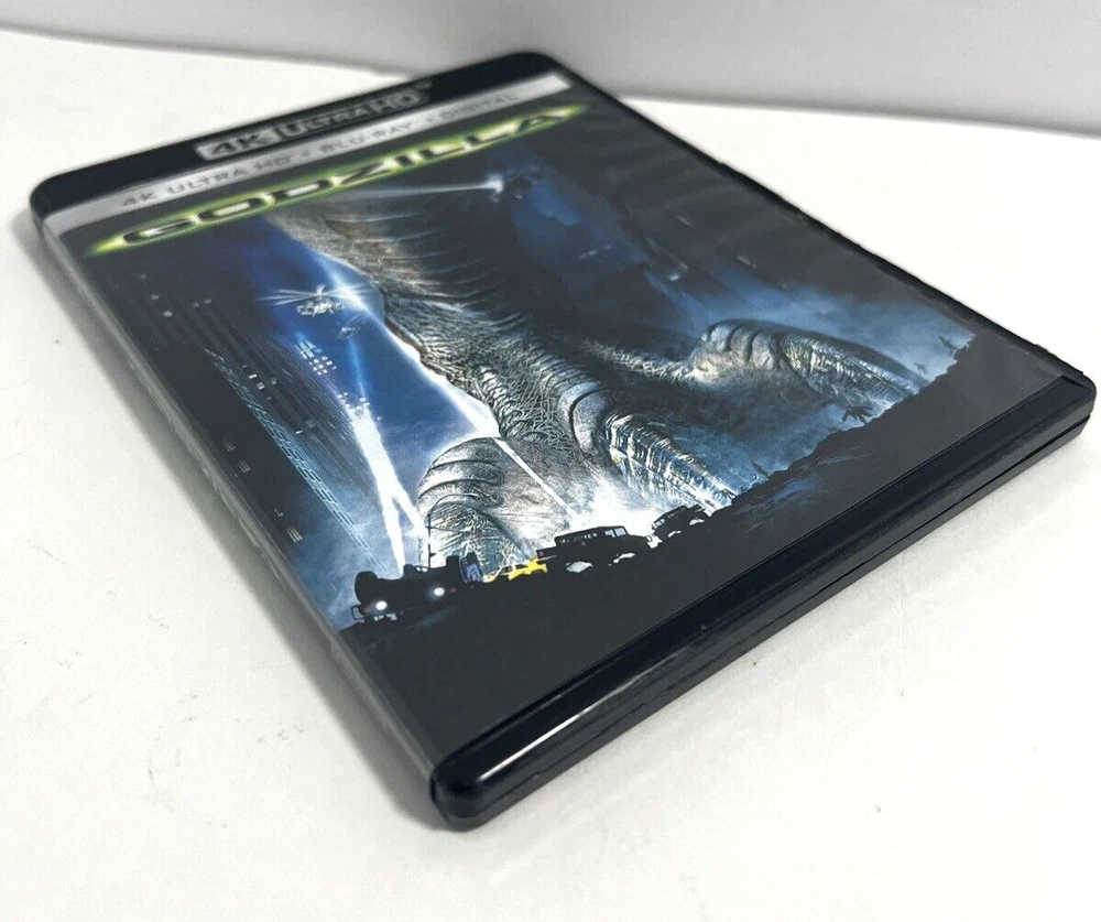 Godzilla 1998 4K Ultra HD + Blu-ray, Matthew Broderick, Jean Reno. Very good used condition. FREE SHIPPING. Some items we sell are Pre-Owned but in very good condition. Any flaws or issues we see will be in a photo. ZOOM Into photos ARE part of the description. Shipping is via USPS, FedEx, or UPS. We have a 1-day handling time on all orders unless you order before 9 am EST we can ship the same day.