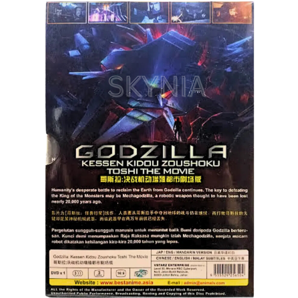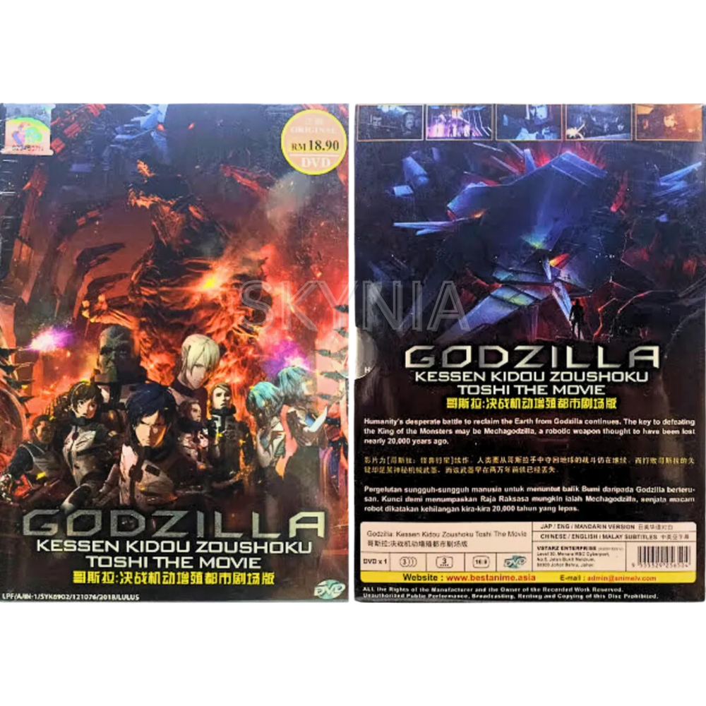 Godzilla 2: Kessen Kidou Zoushoku Toshi(2018) Eng Dub & Sub All Region Anime DvD Synopsis: By the advent of the 21st century, much of humanity was dead, having been trampled over by a new master, Godzilla. A select few among mankind took to the stars in a spacefaring vessel called the Aratrum in search of "the promised land," the planet Tau-e that could sustain human life. But the migration plan fails, and the remnants of the human race decide to return to Earth. But the distortions in space-time and the distance traveled means that mankind is returning to a completely changed Earth some 20,000 years later. The returnees, led by hero Haruo, prepare to take the fight to Godzilla based on a strategy that has been 20 years in the making. Carried out with the help of two alien species, the Exif and the Bilusaludo, the humans succeed in defeating Godzilla in a costly battle to the death. But the victory is short-lived. Rising from the depths of the planet is a new breed of monster, dubbed "Godzilla Earth." Evolving for 20,000 years, the creature stands 300 meters high, weighs over 100,000 tons and wields such overwhelmingly destructive power that Haruo and company have no choice but to run for their lives. Coming to Haruo's rescue, however, is Miana, a member of an aboriginal tribe called the Houtua. They are the first humanoid people the returnees have encountered. Could they descend from humans? "Our tribal god was destroyed by Godzilla. All that we have left are these eggs. Anyone who has tried to fight or resist him has been drowned in fire," the tribespeople say to Haruo, who responds with: "This is our last hope of recovering our home." Meanwhile, Bilusaludo commander, Galu-gu is elated to discover that the Houtua tribe's arrowheads are made of a nanometal or a self-sustaining metal. It had been developed in the 21st century as an "anti-Godzilla" killer weapon deployed at their decisive battle fought at the foot of Mt. Fuji, but had been destroyed before it could be activated in the form of a "Mecha-Godzilla." The nanometal was its base substance, and proof that the manufacturing plant can still be used.