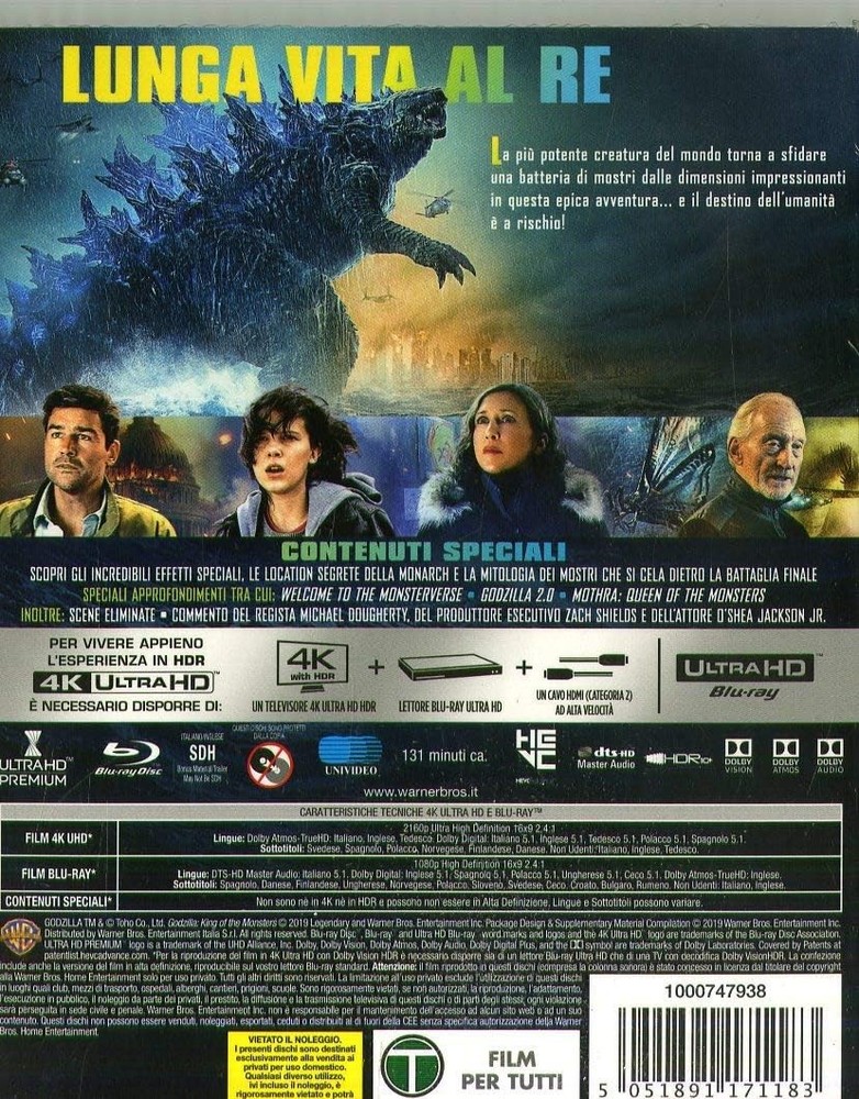 Further Details Title: Godzilla 2: King of the Monsters (4k+Br) Condition: New Format: 4K UHD Blu-ray EAN: 5051891171183 Release Date: 09/19/2019 Director: Dougherty Michael Actor: Chandler, Farmiga, Brown, Watanabe, Hawkins, Dougherty Michael Studio: Warner Bros. No Of Discs: 2 Release Year: 2019 Missing Information? Please contact us if any details are missing and where possible we will add the information to our listing.