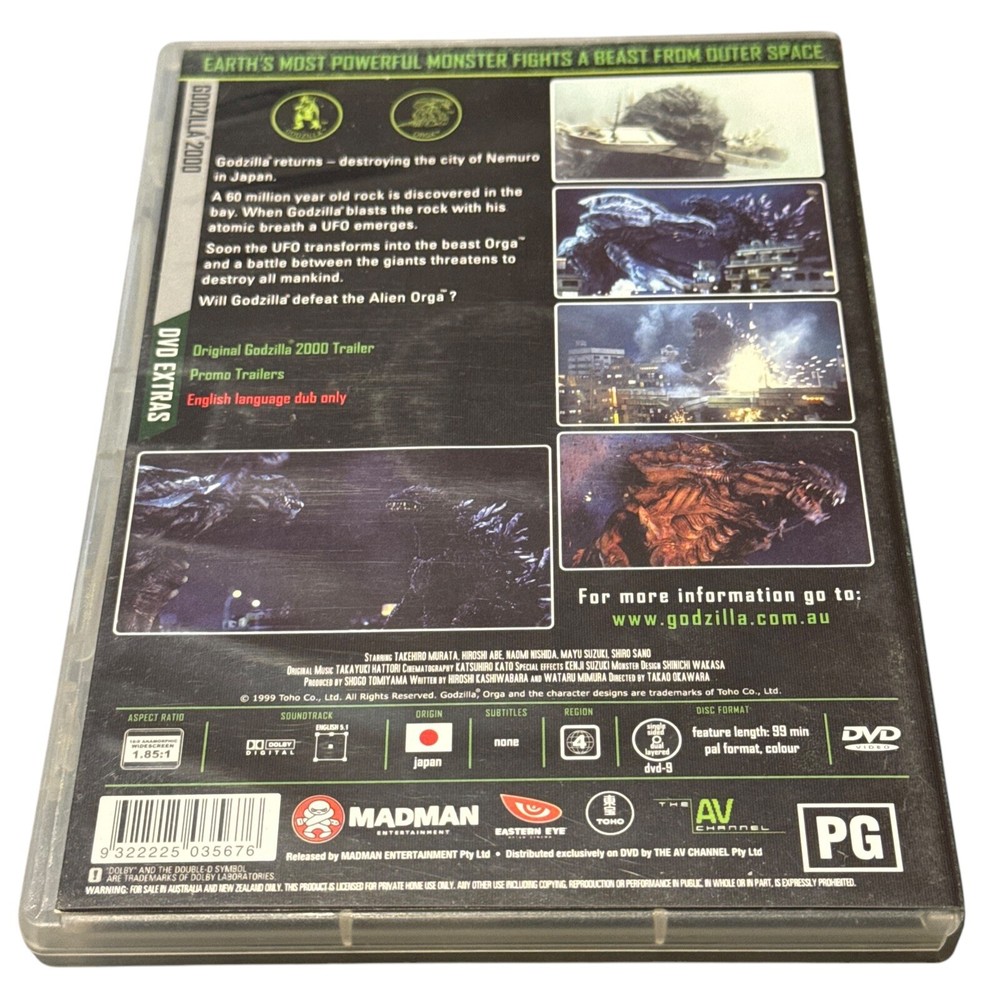 Godzilla 2000 (1999) DVD - Region 4 - Eastern Eye - Japanese Horror Toho. Condition is Good. Sent with eBay Postage Labels.