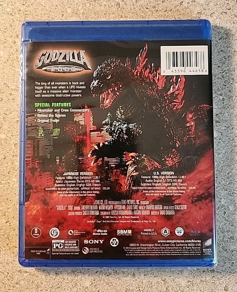 Up for sale... This Blu-ray version of Godzilla 2000 is a must-have for fans of the sci-fi contemporary genre. With a run time of 206 minutes, this movie is packed with action and excitement from start to finish. The PG rating ensures that it is suitable for all ages, and the stunning visuals make it a cinematic masterpiece. Released in 1999 by Sony Pictures, this Blu-ray is a great addition to any movie collection. Brand new, factory sealed. Ships USPS media mail free. PLEASE BE SURE TO CHECK OUT MY OTHER AUCTIONS AND VISIT MY STORE SEAY HOUSE COLLECTIBLES INTERNATIONAL SHIPPING THROUGH EBAY INTERNATIONAL ONLY!!! SMOKE FREE PET FREE HOME ITEMS SHIP IN 1-3 BUSINESS DAYS AFTER PAYMENT IS RECEIVED PLEASE READ ALL BEFORE BIDDING