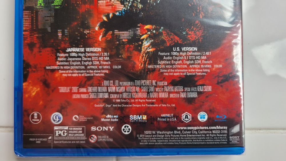 Godzilla 2000 Blu-ray Toho Godzilla Collection w/ both U.S. & Japanese versions See pictures for item you will receive...