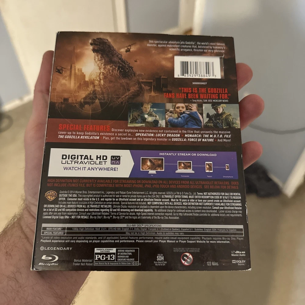 Experience the thrill of the legendary Godzilla with this 2-disc set featuring Blu Ray and DVD. Directed by Gareth Edwards, this science fiction horror movie is rated PG-13 and comes with English, French, and Spanish subtitles. The movie was released in 2014 by Warner Home Video and is available with a slipcover. This item is perfect for fans of the Godzilla franchise and those who love science fiction and horror movies. The 2-disc set provides high-quality viewing options and the slipcover adds a unique touch to your collection. Get ready to witness the destruction and chaos caused by Godzilla in this epic movie.