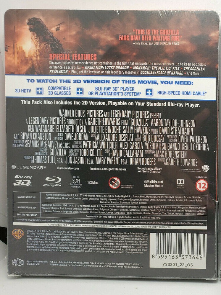 Own: Godzilla 3D (2014) Blu-ray + Blu-ray 3D REGION-FREE Sold-Out Film Arena Limited Edition STEELBOOK Factory Sealed Ships in a padded box with a tracking number (in the U.S)