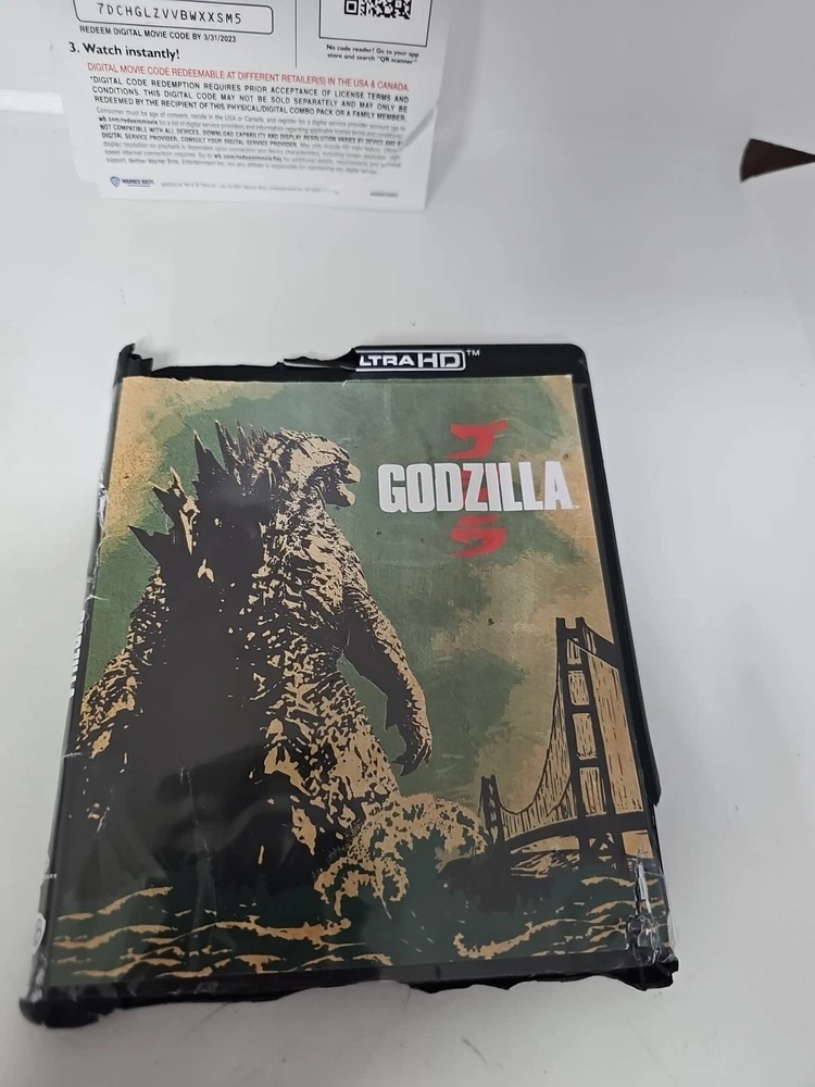 Godzilla (2014) 4k Blu-ray + Blu-ray + Dig Warner Bros Mar/2021. Open Box. Package cover is broken. The Cds are perfect unaffected. FREE SHIPPING AND FREE RETURN. Please, see pictures.