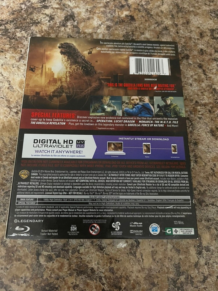 Get ready to experience the epic monster battles with "Godzilla" on this Blu-ray + DVD + Digital HD Ultimate edition. This set includes all the action-packed thrills of the iconic film in stunning high definition, perfect for fans of the legendary monster and movie enthusiasts alike. Immerse yourself in the heart-pounding excitement of Godzilla's battles as you watch this thrilling film in the comfort of your own home. Don't miss out on adding this must-have edition to your collection of DVDs and Blu-ray discs today.