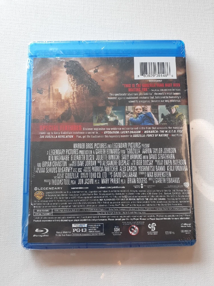 Godzilla (2014) Blu-ray NEW. Starring Elizabeth Olsen, Brian Cranston, Ken Watanabe. Rated PG13, A Warner Bros Entertainment picture....
