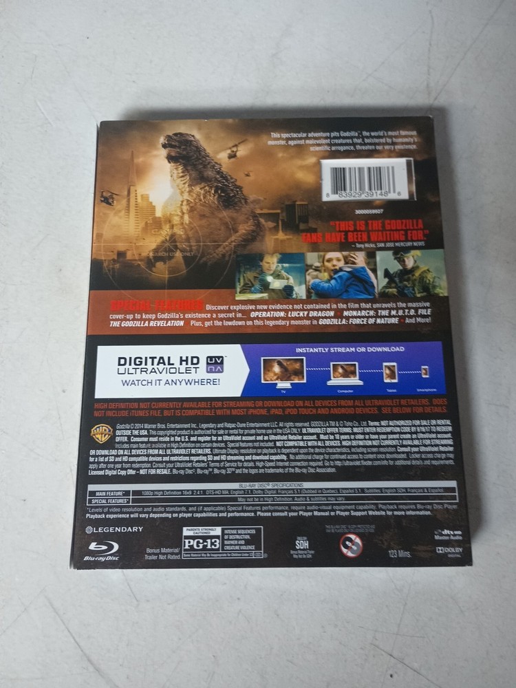 The product is a Blu-ray + DVD combo of the movie "Godzilla" released in 2014, presented in standard definition widescreen format. The edition is the standard edition, and it comes in a Blu-ray case with a slipcover. The film falls under the action genre with a sub-genre of creatures/monsters, making it a thrilling watch for fans of monster movies.
