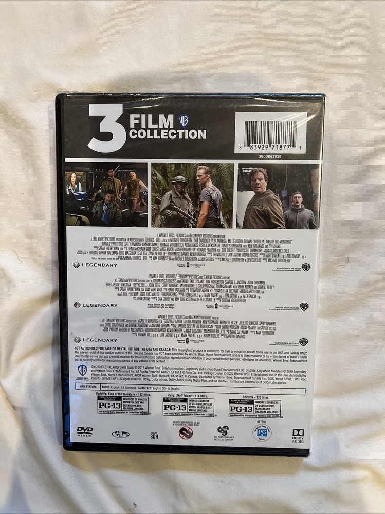 Indulge in a thrilling cinematic experience with the Godzilla 2014 Kong: Skull Island Godzilla: King of the Monsters 3 Films DVD. This DVD features three action-packed movies, starring renowned actors like Samuel L. Jackson and directed by Gareth Edwards. The DVD comes in a Region 1 format with American English language and subtitles. The DVD also includes special features like a behind-the-scenes featurette, making it a must-have for movie enthusiasts. Enjoy the adrenaline rush of these films and add them to your collection today.