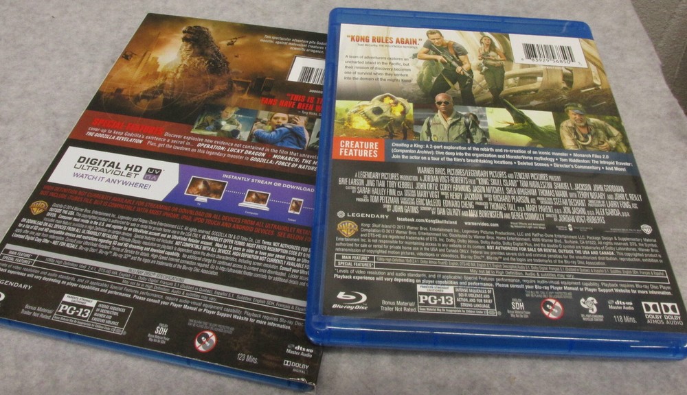 Godzilla 2014 with slipcover and Kong Skull Island Blu-ray + DVD lot of 2. Discs are in excellent condition. clean Kong skull island has NO slipcover. Digital codes have been redeemed... Out of production. smoke free pet free home. Cool addition to your movie monster collection. sold as is. no refunds or returns. No international. Shipping and handling is $4.00