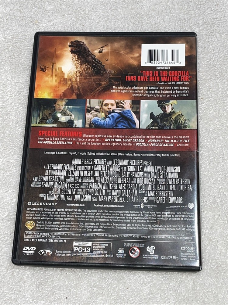 Experience the ultimate horror-monster movie with Godzilla on DVD. Directed by Gareth Edwards and featuring Bryan Cranston and Juliette Binoche, this sci-fi contemporary film is a must-watch for fans of the genre. This special edition DVD includes additional features and runs for 123 minutes. Rated PG-13 and released in 2014 by Warner Home Video, this DVD is perfect for movie collectors and enthusiasts. Get ready to witness the battle between Godzilla and his enemies in this thrilling movie.