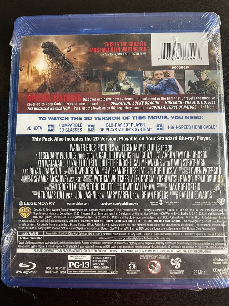 Godzilla (3D Blu-ray + Blu-ray + DVD, 2014 Bryan Cranston New Sealed...