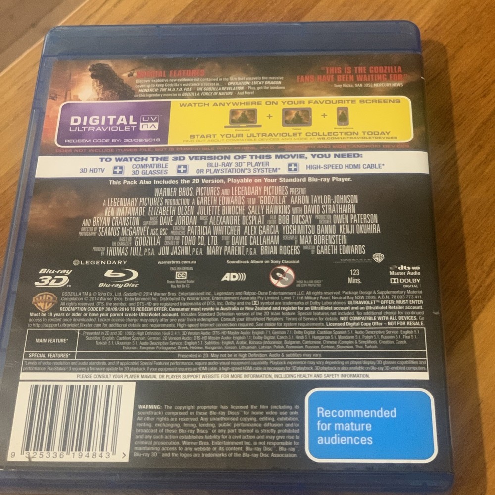 Embark on a thrilling journey with "Godzilla | 3D + 2D Blu-ray + UV," a gripping action and adventure film that brings you face-to-face with the titular monster in a spectacularly visually stunning experience. Directed by Gareth Edwards, this 2014 release boasts a star-studded cast including Bryan Cranston, Elizabeth Olsen, and Ken Watanabe, delivering a riveting storyline that's sure to captivate from start to finish. This Blu-ray edition offers not just a high-definition viewing option but also an immersive 3D adventure, complemented by an aspect ratio of 2.35:1 that ensures you lose yourself in the cinematic spectacle. With a runtime of 135 minutes, the film is rated M, catering to a mature audience seeking both adrenaline and drama. Get ready for a cinematic experience that's as colossal as the monster itself.