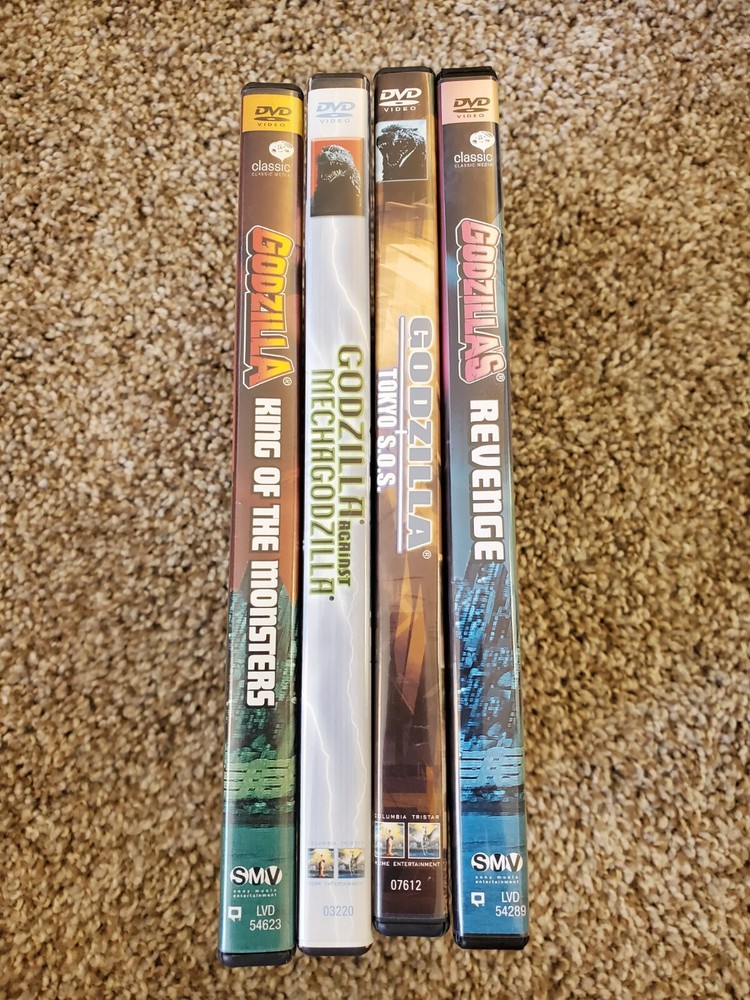 Godzilla 4 DVD Lot King Of The Monsters Revenge Tokyo SOS MechaGodzilla. Great preowned condition! All discs tested and fully playable. Shipping through USPS Media Mail.