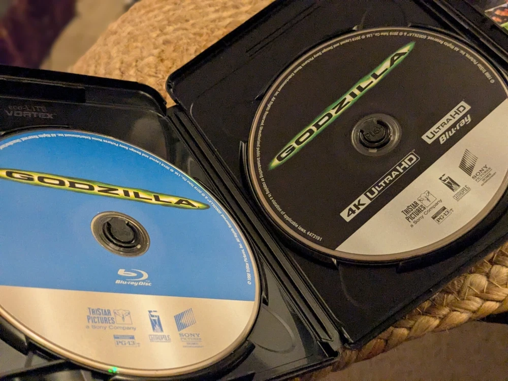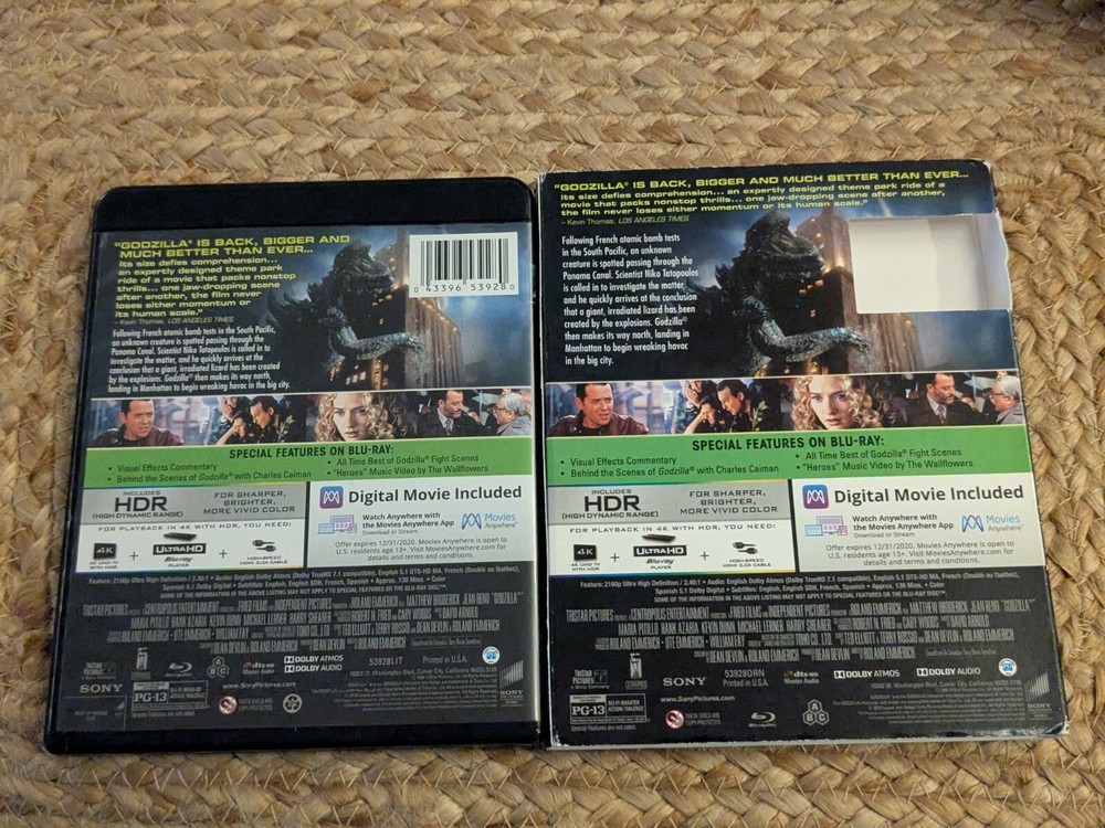 Godzilla 1998 (4K Ultra HD, Blu-rayl) with the out of print slipcover. The slipcover is in great condition overall but it's not perfect. The surface and some of the edges have some wear, please see all the photos before purchasing. I will ship with care, bubble wrapped and in a box to avoid any damages during shipment. Thanks for your time reading this and looking at my listing. Please be sure to check out my other 4k /Bluray currently for sale. I combine shipping.