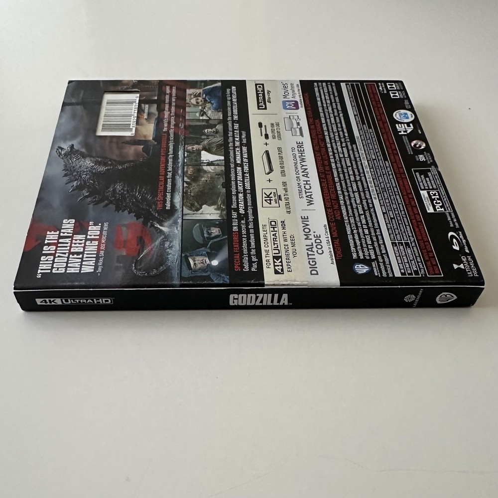 Region Free Import 4K Ultra HD + Blu-ray Like New Includes Rare OOP Slipcover In this gritty, realistic sci-fi action epic, Godzilla returns to its roots as one of the world's most recognized monsters. Directed by Gareth Edwards and featuring an all-star international cast, this spectacular adventure pits Godzilla against malevolent creatures that, bolstered by humanity's scientific arrogance, threaten our very existence. Special Features and Technical Specs: HDR PRESENTATION OF THE FILM DOLBY ATMOS AUDIO TRACK MONARCH: Declassified – Discover explosive new evidence not contained in the film that unravels the massive cover-up to keep Godzilla's existence a secret. Operation: Lucky Dragon MONARCH: The M.U.T.O. File The Godzilla Revelation The Legendary Godzilla – Go behind the scenes with filmmakers and cast for an even deeper look at the larger than life monsters in the film. Godzilla: Force of Nature A Whole New Level Of Destruction Into The Void: The H.A.L.O. Jump Ancient Enemy: The M.U.T.O.s Optional English SDH, and Spanish subtitles for the main feature