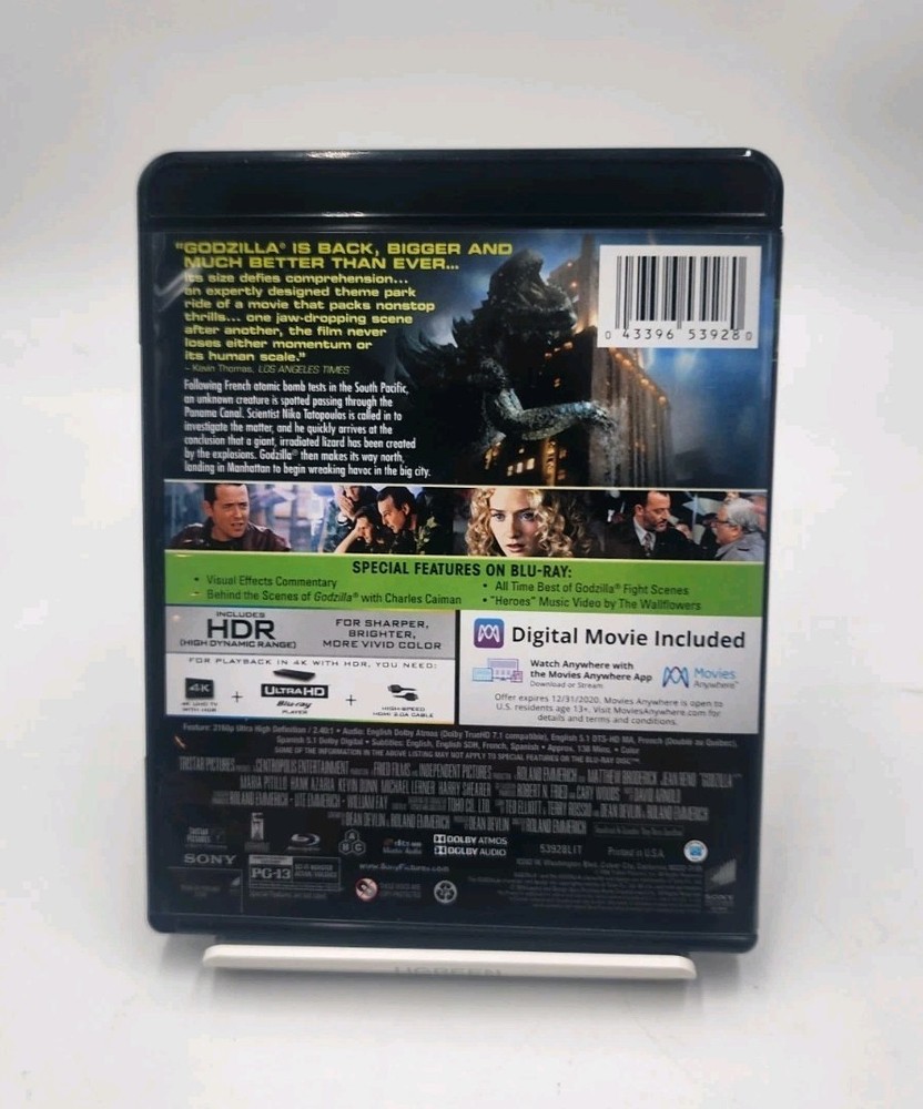 You are bidding on a Godzilla 4K Ultra HD & Blu-ray With/Slipcover Excellent Condition Free Shipping. Both discs are in overall excellent cosmetic condition with no scratches. Although there is a digital code included, I am not the original owner of this set so any digital code may have been previously redeemed or may have expired. Payment must be made within 48 hours of close of auction and will be shipped via USPS media mail to USA continental addresses only. Thank you
