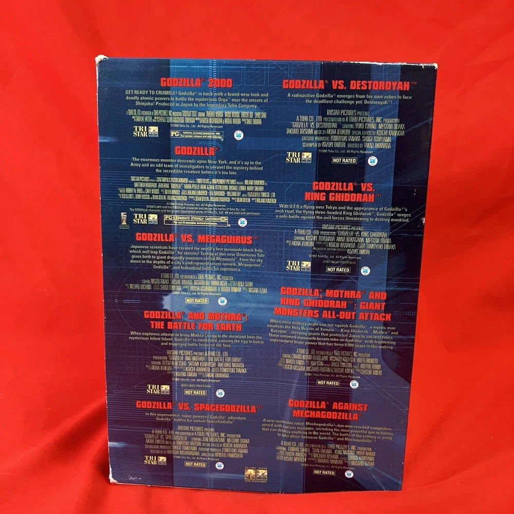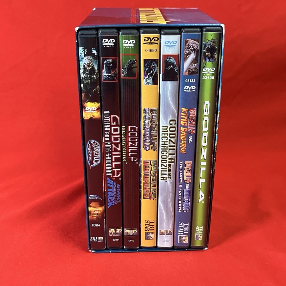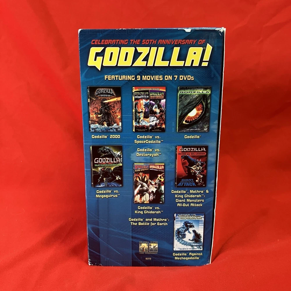 Godzilla 50th Anniversary 9-Movie DVD / Collection Set Mothra / 5 Sealed 2 Opened 9 movies on 7 disks. Two disks are opened - Both tested and play without issue. Five disks sealed. Retail cardboard box has wear, with one corner wrinkled. Please note: This item is pre-owned and may show some signs of wear, but it is still in good condition. Item color may vary from screen to screen, photo lighting, or screen resolution. Crayons may be shown to help identify color. Get a sense of scale! Everyday objects like tape measures, water bottles, pens, and coins may be included in some photos for size reference only. When possible, clean recycled materials are utilized for shipping.