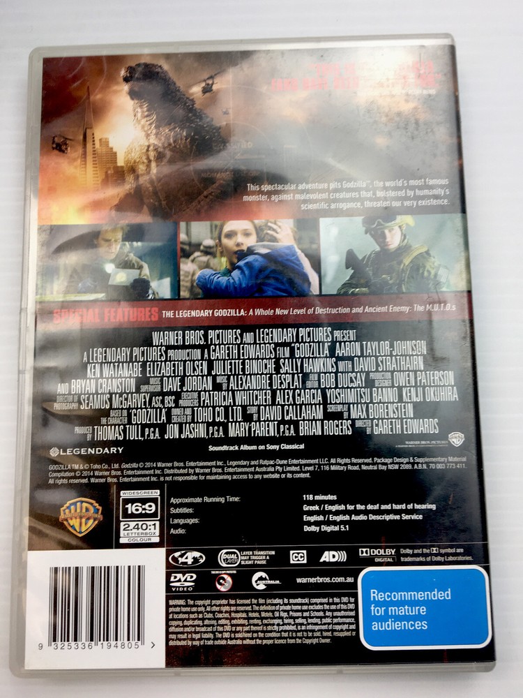 Godzilla - Aaron Taylor-Johnson, Elizabeth Olsen, DVD, R4 PAL, M with Tracking Condition is good. Sent with Australia Post Domestic letter with Tracking....