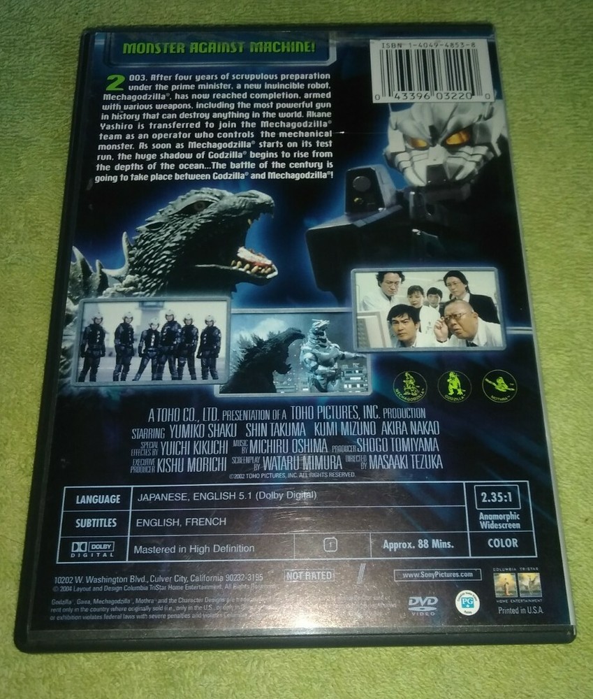 This is the movie Godzilla Against Mechagodzilla on DVD. The movie is in wide-screen format. It is from Toho pictures and the DVD was released by Columbia Tristan. The DVD is in NM condition. The cover is in EX condition with minor wear. Buyer to pay shipping and handling per the shipping calculator. We will ship to the United States and Canada.