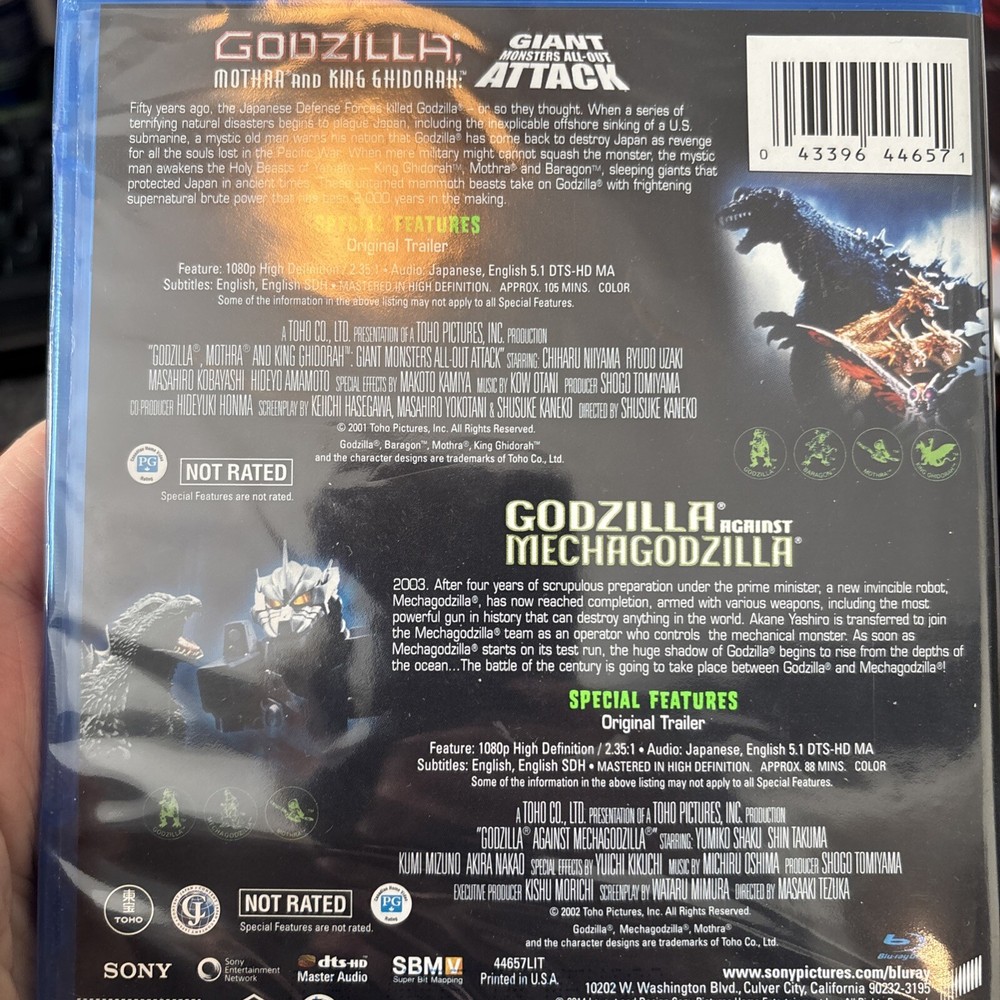 | Movie/TV Title | Godzilla Against Mechagodzilla / Godzilla, Mothra, and King Ghidorah: Giant Monsters All-Out Attack |