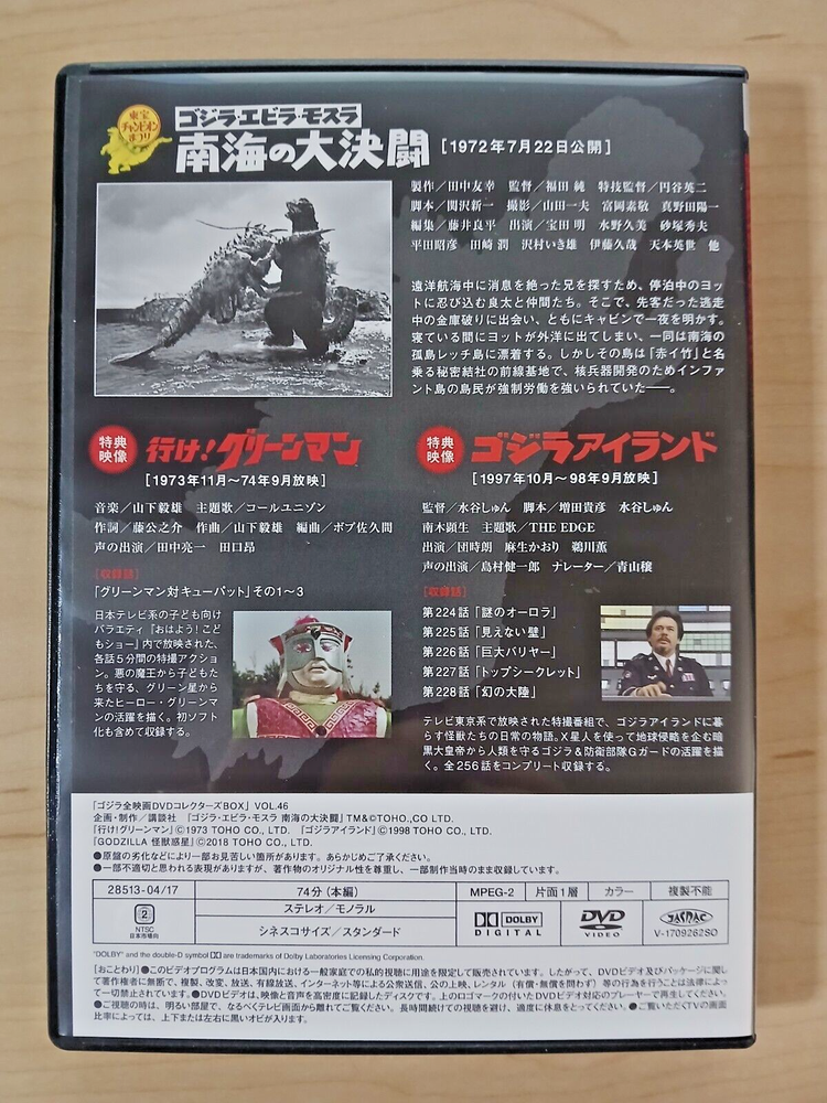 Notes: Region 2. Japanese language. Disc and case only - no extras/inserts/appendices. Contents: * 1972 Toho Champion Festival version of Ebirah, Horror of the Deep Disc and case are in great shape, though case is not sealed so considered used. Please review the pictures above and judge for yourself. Note that this is a Region 2 disc, so please confirm your player can run this disc. All items will be shipped Ground Advantage or Priority Mail with cardboard protection. ------------------------------------------------------------------------------------------------------------------------ Combined shipping: *within US - If not combined automatically at checkout, I can refund any overages paid when I combine while packing up orders. *outside US - I cannot combine international orders after purchase, so please reach out first. I can create custom listings combining all items desired. I generally make trips to the post office every weekday, barring extreme weather or holidays. Every item gets packaged with care, using cardboard reinforcement and bubble wrap whenever possible. Particularly rare, fragile, or expensive items will be shipped in boxes. Thank you for your interest! ~CK Indies and Imports
